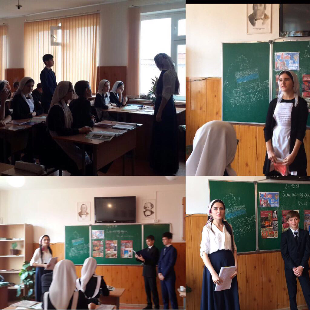 Открытый урок истории на тему " Если народ един - он не победим "Посвящённый "Дню народного единства "провела Хамурадова Э.Х