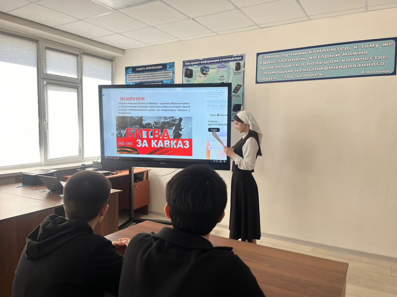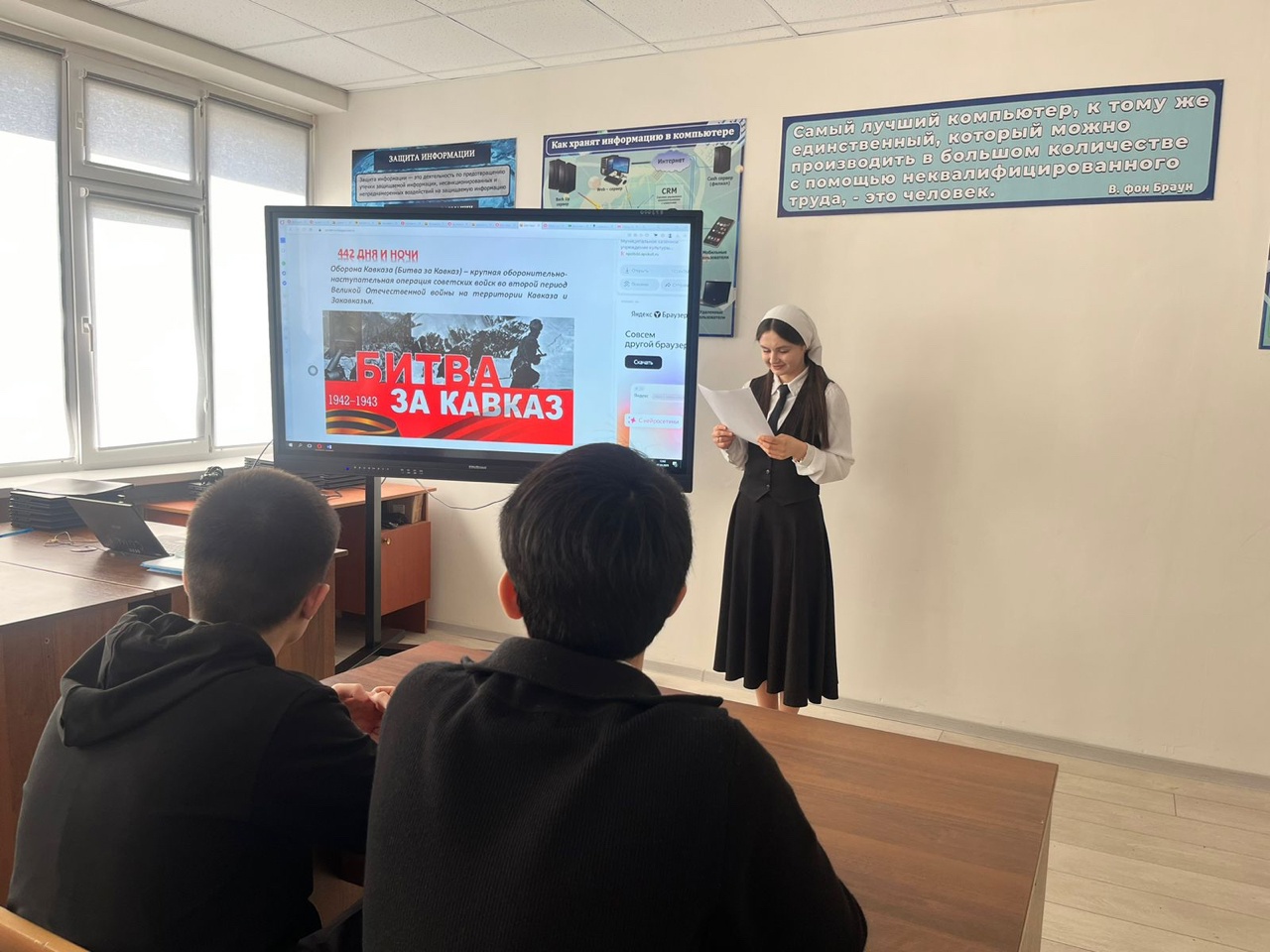 07.03.2025В рамках реализации просветительского проекта «Поезд Победы» в МБОУ «СОШ/3 г. Урус-Мартан» в 10-11 классах были проведены единые урокиВ ходе урока обучающимся рассказали об истории Великой Отечественной войны, о проекте «Поезд Победы», который направлен на расширение знаний о ВОВ и формирование у подрастающего поколения любви к Родине