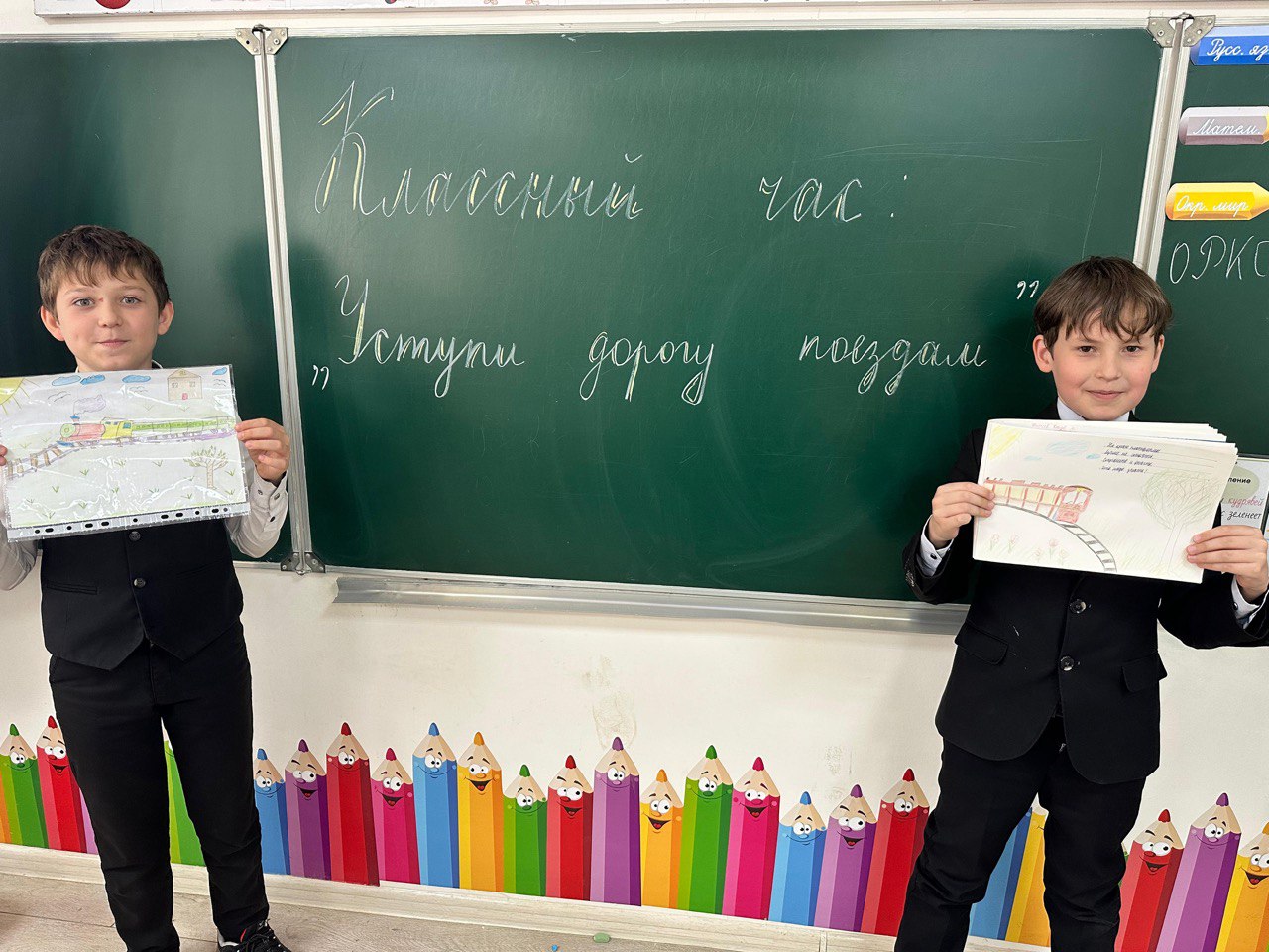 В рамках реализации детского месячника «Уступи дорогу поездам!», направленного на формирование у несовершеннолетних граждан культуры безопасного поведения на объектах железнодорожного транспорта в 4 В классе был проведен классный час: «Уступи дорогу поездам»
