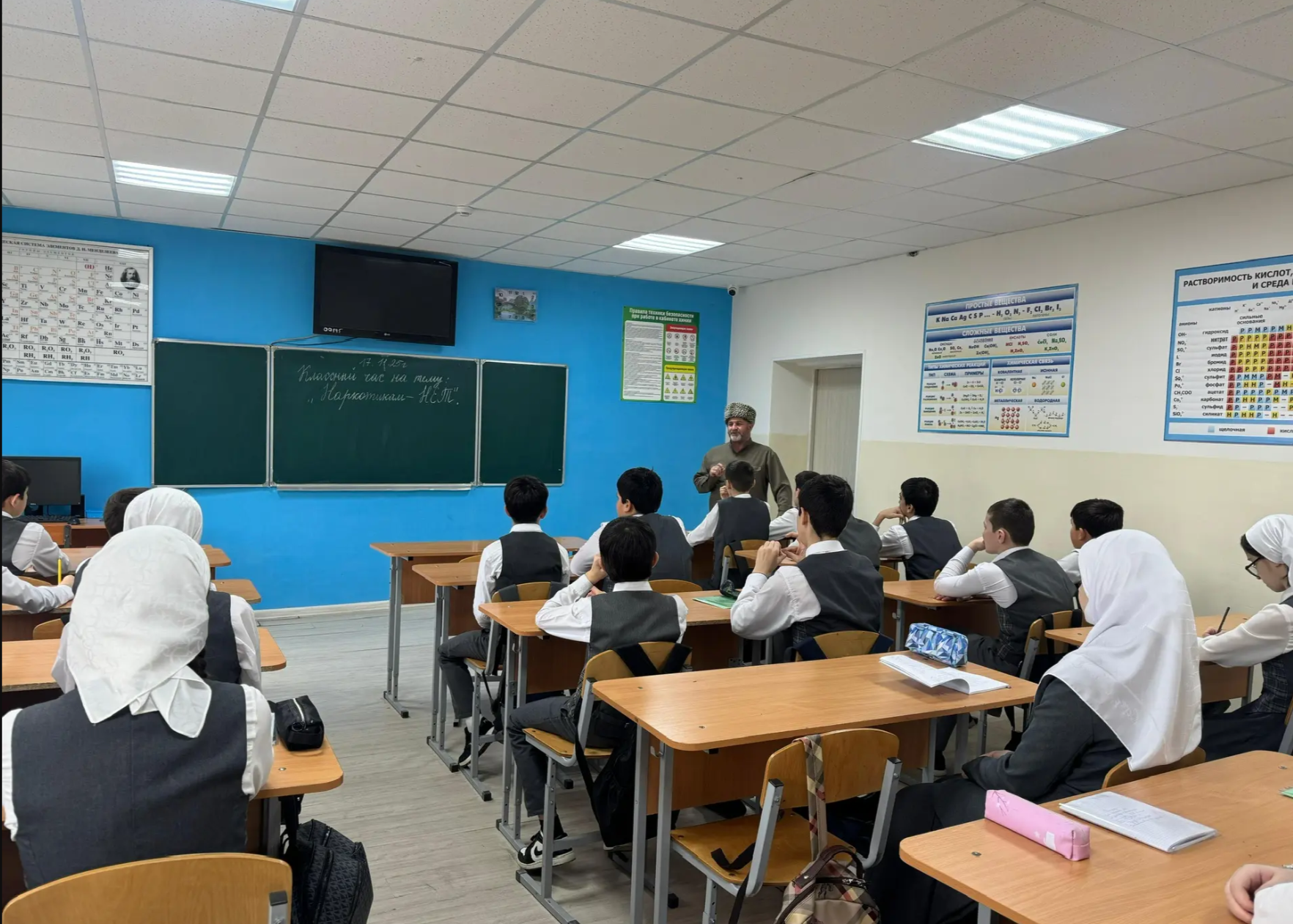Была проведена беседа в 7 В классе педагогом по ДНВ Докаевым А.А. на тему «Наркотикам-НЕТ».